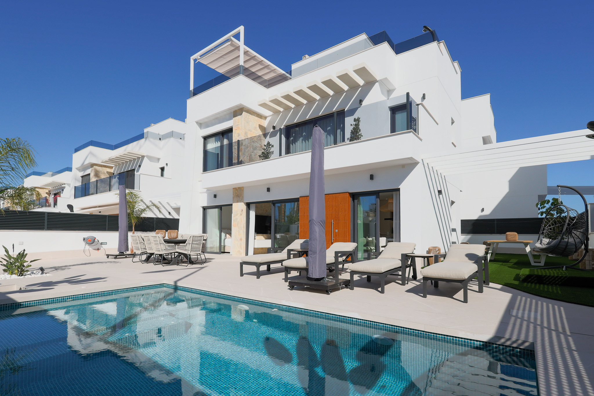 Bask in the golden warmth of the Spanish sun at our exclusive luxury villa nestled on the serene shores of the Mar Menor. Designed for indulgent comfort and complete relaxation, this stunning retreat offers the perfect setting for unforgettable holidays.